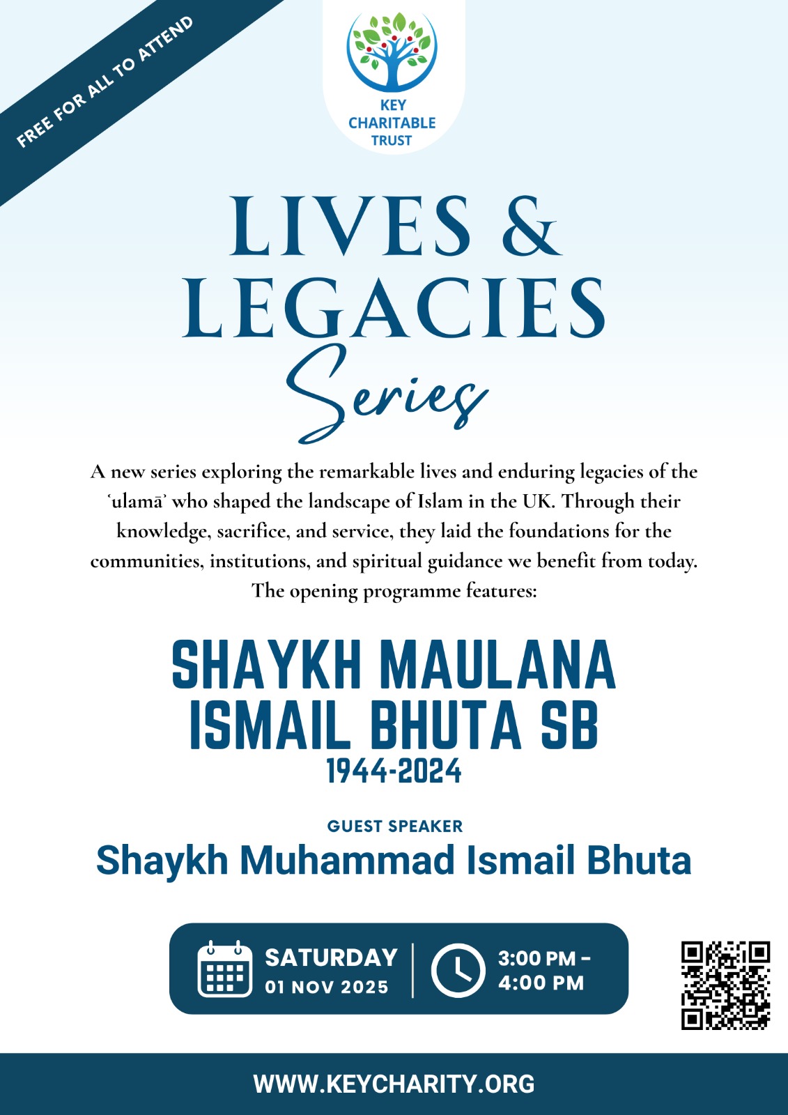 Register using the QR Code or use the link below:For more information, or to find out how you can support us, please contact us at: info@keycharity.org